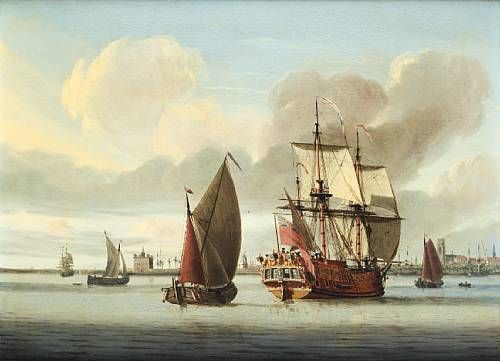 | Shipping off the dockyard at Sheerness, with a man-o'war heading into port and Garrison Point beyond; A Royal yacht heading into | |