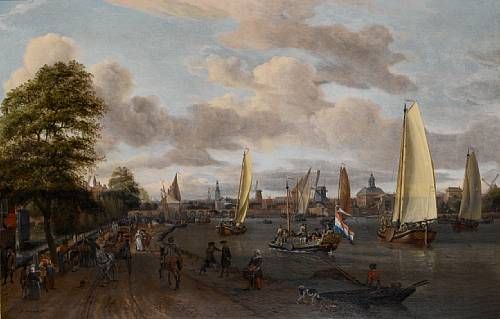 | The river Buiten-Amstel with a trekschuit and other shipping, elegant figures and carriages on the bank and a view to Amsterdam | |