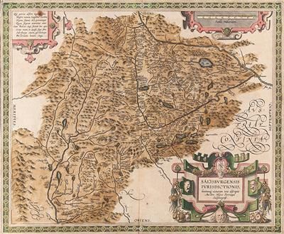 | Landkarte vom Land Salzburg mit den 3 Rollwerkkartuschen | |