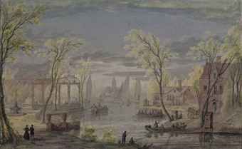 | A river landscape near Amsterdam with an elegant house and gardens on the left | |