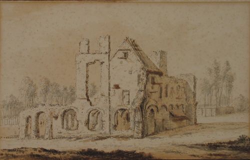 | Drawing pen and brown and grey ink, brown and grey wash | |