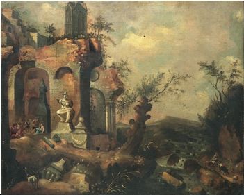 | Klassicerande landskap med ruiner och figurer | |