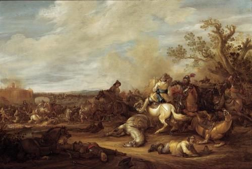 | A CAVALRY BATTLE SCENE BEFORE A FORTIFIED TOWN | |