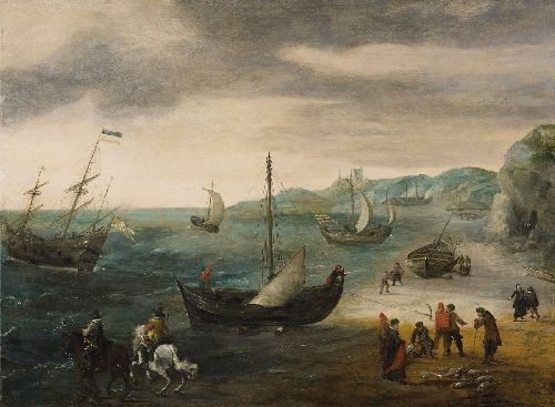 COASTAL LANDSCAPE WITH RICH FIGURAL STAFFAGE