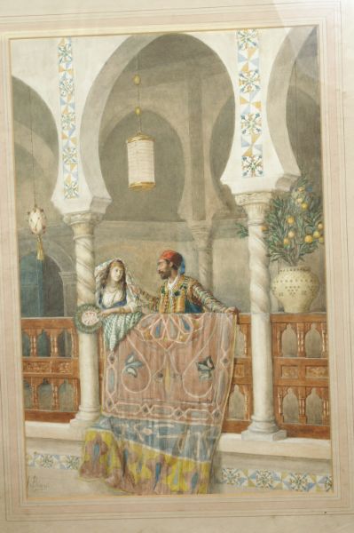 Moorish Balcony, with figures in colourful dress