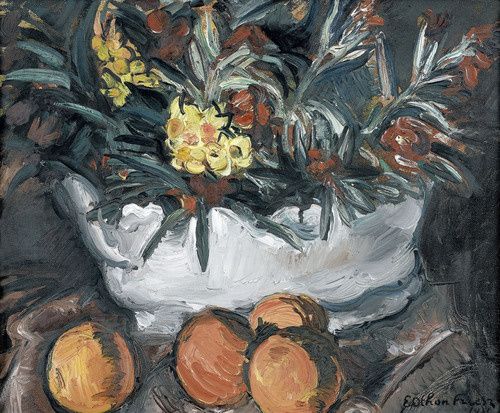 Nature morte avec bouquet et oranges.