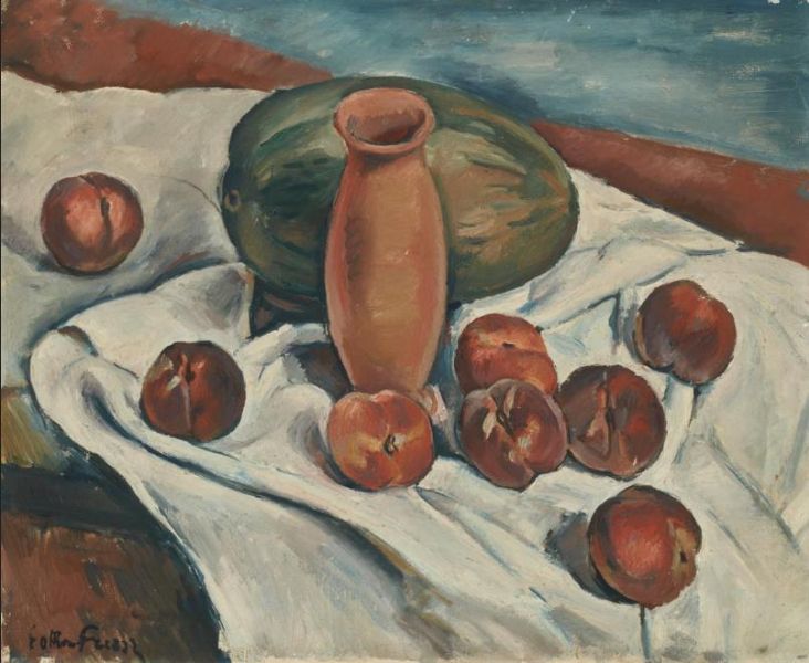 | Nature Morte, Pasteque, Huit Peches et un Vase | |