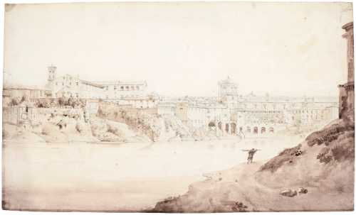 | VIEW OF THE BANKS OF THE TIBER NEAR THE PONT SAINT-ANGE, ROME | |