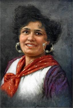 Beautiful portrait of a south Italian woman with pearl earrings.