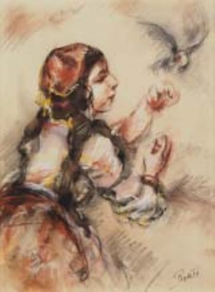 | LA JOUEUSE DE MANDOLINE - FEMME AU FAUCON - LE NARGUILÉ - LE VENDEUR DE FRUITS | |