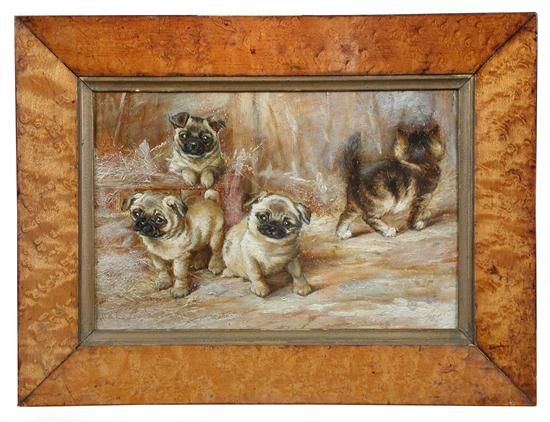 | Three and Away - A Study of three pug puppies and a kitten | |