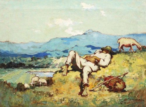 Ciobănaş cu turmă de oi