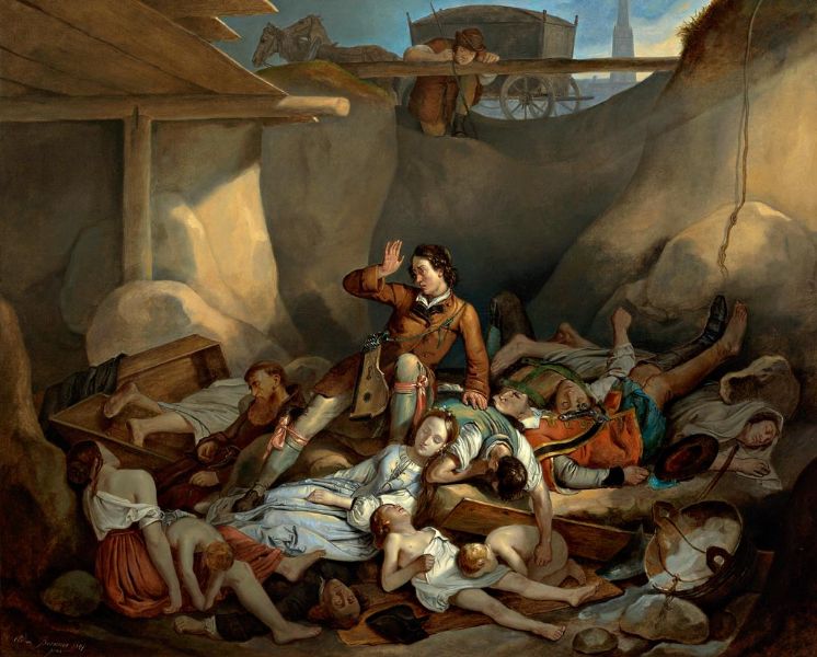 | Der liebe Augustin erwacht in der Pestgrube. Im Hintergrund der Stephansdom. Meisterliche Schilderung. | |
