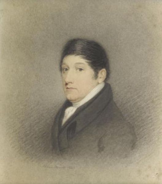 A Gentleman, wearing black coat, white stock and cravat, his dark hair parted to one side