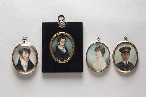 | A young gentleman, having dark hair and brown eyes, and wearing a blue coat, cream waistcoat and tied stock, against a sky backg | |