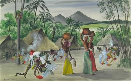 HAITIAN VILLAGE SCENE WITH DEMONS