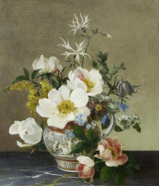 Still life of flowers on a marble ledge