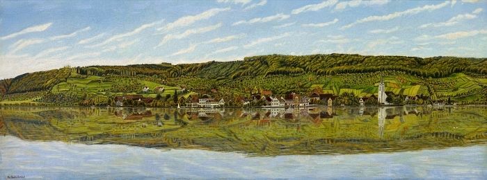Berlingen vom See aus. Panorama-Ansicht. 1928.