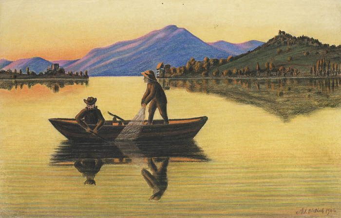 Fischer in der Dämmerung auf dem See. 1906.