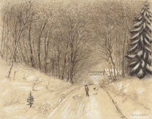Winterlandschaft mit Spaziergänger