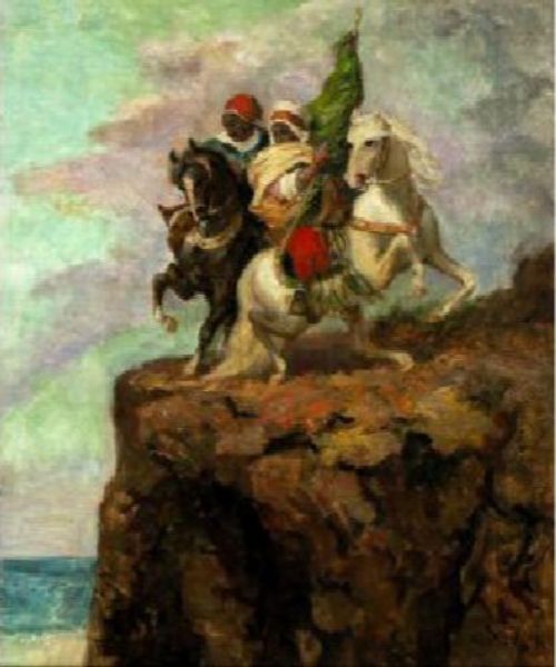 Cavaliers arabes au bord d'une falaise