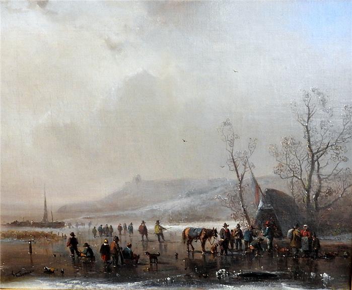 Zahlreiche Personen beim "Eisvergnügen" auf zugefrorenem Flusslauf