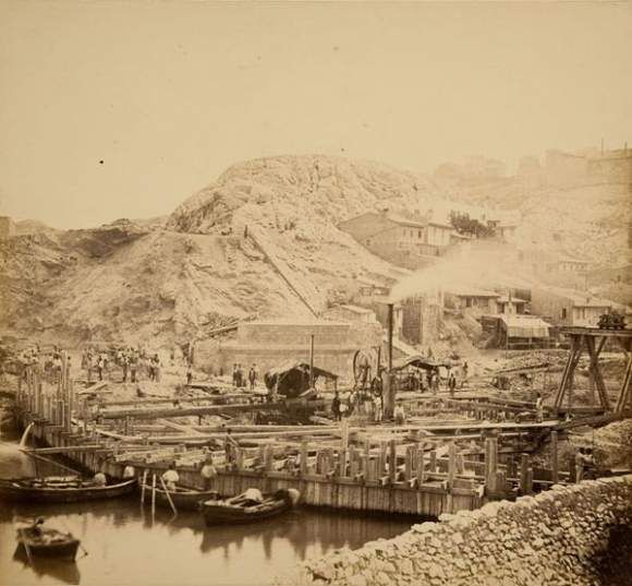 Le viaduc du Vallon des Auffes, Marseille, vers 1860