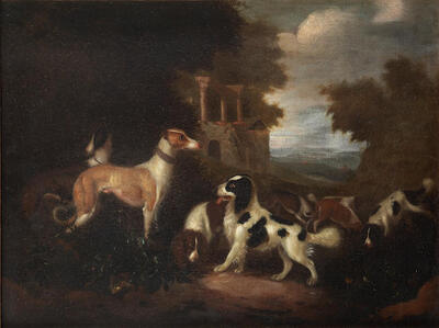Dogs in a landscape; and Dogs before ruins, a landscape beyond