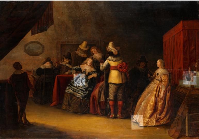 GESELLSCHAFT IN EINEM NIEDERLÄNDISCHEN INNENRAUM