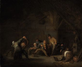 | Peasants making music and dancing in a tavern | |