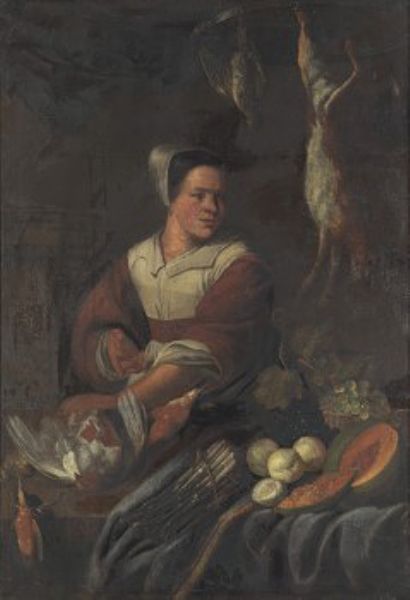 Hans krets. Stilleben med frukter och vilt samt kökspiga