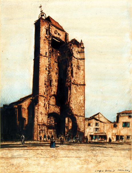 Pen nd black ink, with watercolour, framed and glazed