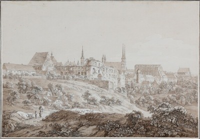 View of a city with ruins. Unsigned. Drawing ink and wash on paper. Sheet size 326×465 mm. | |
