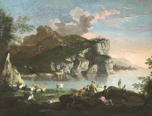 PAESAGGIO MARINO CON PESCATORI E ARMENTI