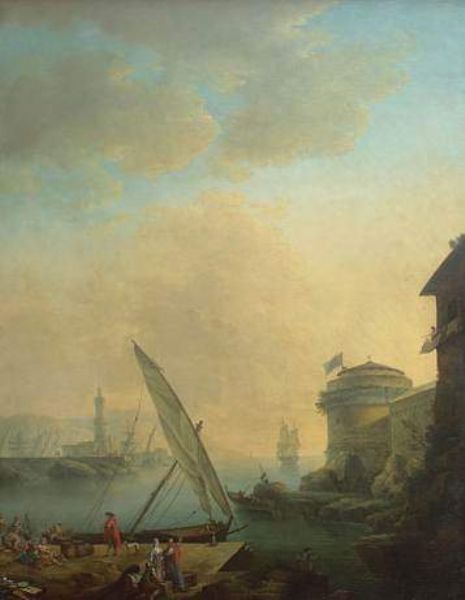 Scène de port méditerranéen avec un marchand