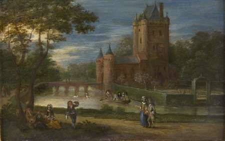 ELEGANT FIGURES IN A CASTLE GROUNDS