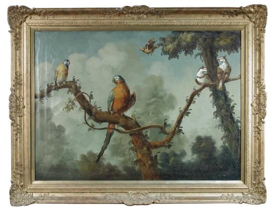 | Study of a Blue-crowned Parakeet, a Blue-and-yellow Macaw, a Hawfinch and a pair of imaginary birds | |