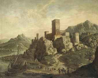 | An Italianate coastal inlet with a fortified hilltop town | |
