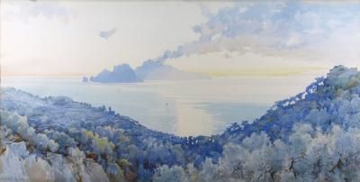 Capri, an extensive view from the Amalfi coast looking towards the Island