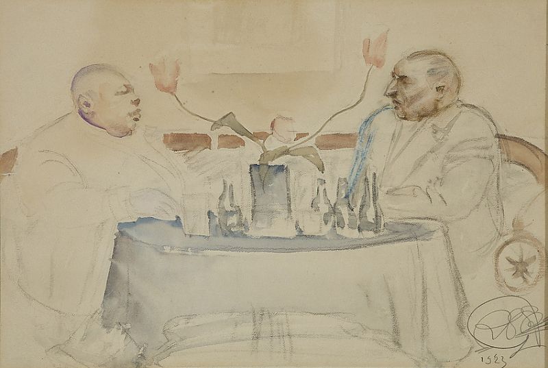 O.W.Ehrström ja Mikko Slöör Wilho Sjöströmin ateljeessa