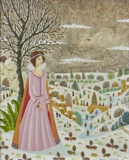 | Young woman on a background of snow landscape | |