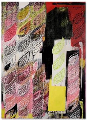 | Oil acrylic, spray paint and screenprint on canvas | |