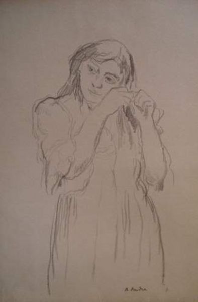 JEUNE FILLE SE COIFFANT