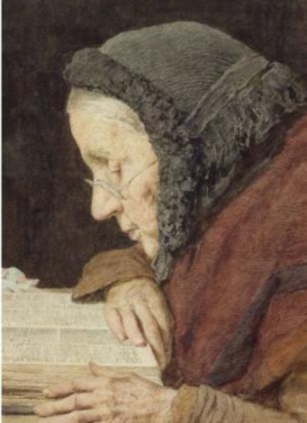 Older woman reading from the Bible