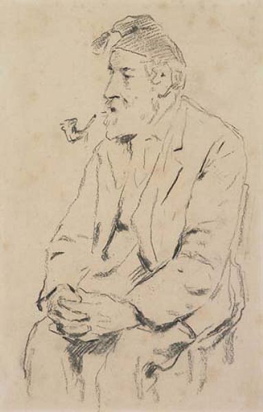 Sitzender alter Mann mit Tabakpfeife.