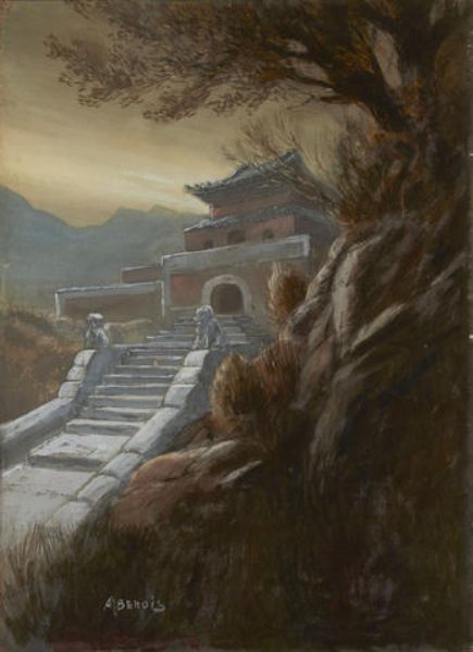 | ishing boat going out to 'A forgotten temple of Confucius, in the mountain near Tunanfuat night | |