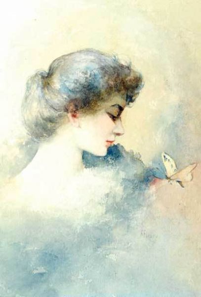 | Head of a woman, with butterfly, bust-length profile portrait | |