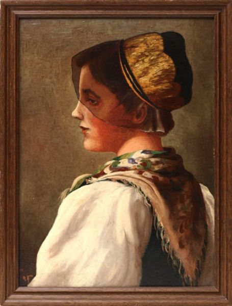 Profilportrait einer Schwarzwälderin in Tracht mit Haube