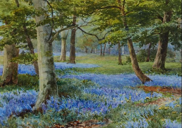 | GROVE OF TREES WITH BLUEBELLS IN BLOOM | |