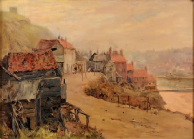 | Whitby; a view to ishermen’s cottages over roofs and to the harbour and town beyond | |